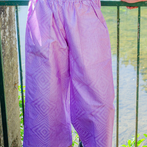 Dans la continuité du short, ce modèle reprend une taille haute élastiquée et une coupe généreuse, pensée pour accompagner le corps sans le contraindre. Le volume est maîtrisé : il donne de l’allure sans alourdir la silhouette.